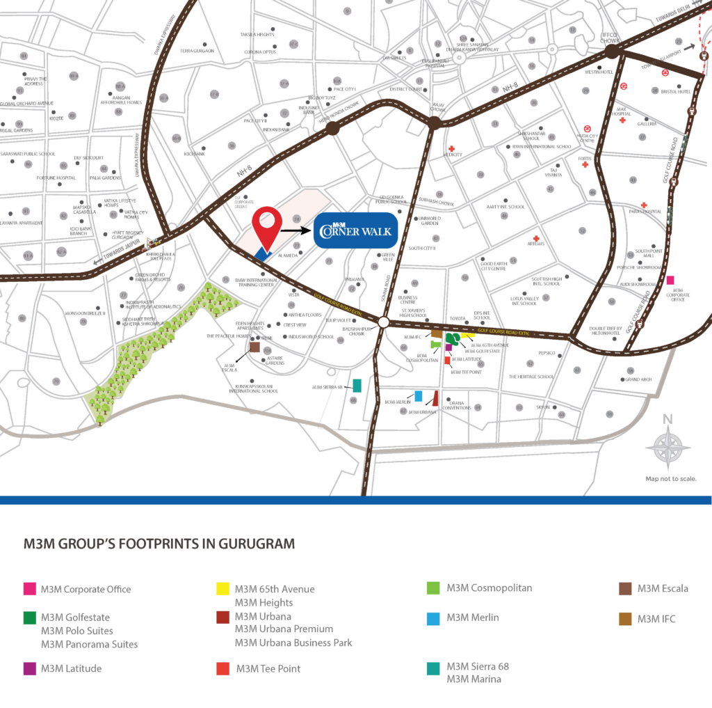 ‘M3M Corner Walk’ enjoys excellent arterial connectivity to Dwarka, Manesar, and NCR. In addition, the project is well-connected to Golf Course Road, Sohna Road, and NH8. Intended to be the preferred hot spot for upscale retail outlets and large corporates, ‘M3M Corner Walk’ is bound to be the focal point of business.